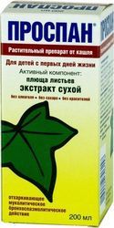 - Дозировка действующего вещества 1 мл. сухой экстракт листьев плюща (5 - 7.5:1)* 7 мг