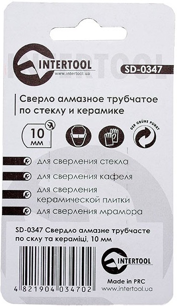 Сверло алмазное трубчатое по стеклу и керамике Intertool SD-0347
