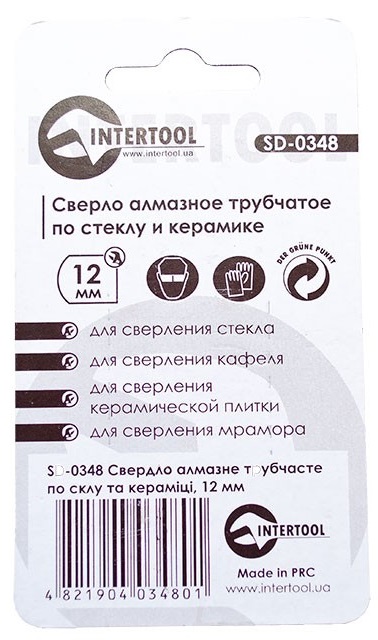 Сверло алмазное трубчатое по стеклу и керамике Intertool SD-0348