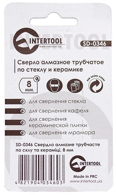 Сверло алмазное трубчатое по стеклу и керамике Intertool SD-0346