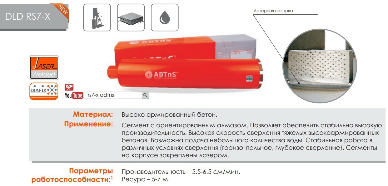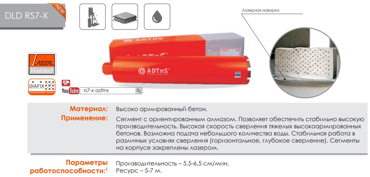 ADTnS САМС-W 112 450-9 DLD 112 RS6 (37903370089) - это алмазная коронка, с помощью которой выполняют работы по бетону, армированному и высокоармированному бетону, граниту, железобетону. Характеризуется длиной 450 мм и диаметром 112 мм.
