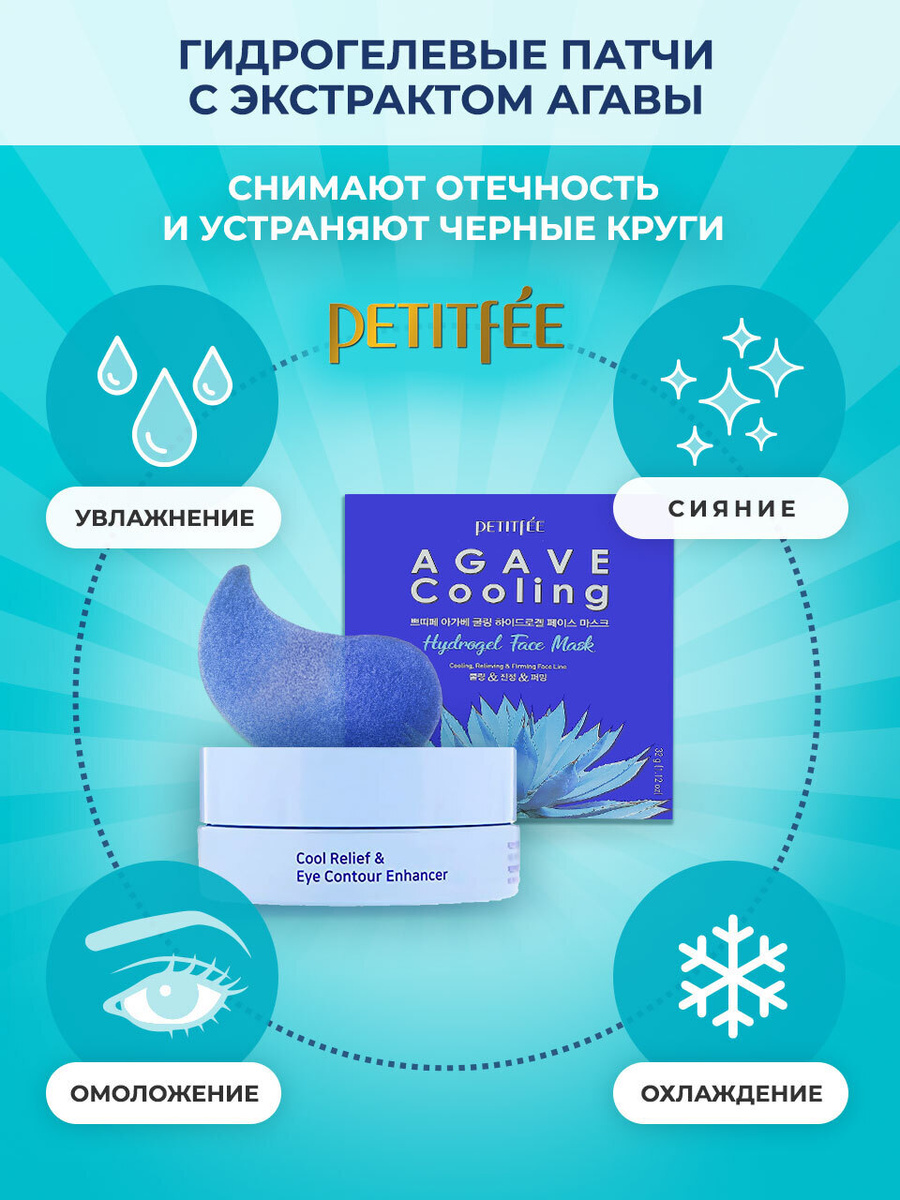 Petitfee гидрогелевые патчи с экстрактом агавы Petitfee Agave Cooling Hydrogel Eye Mask, 60 шт (Корея)