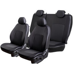 Чехлы для автомобильных сидений Lord AutoFashion модельные для Nissan Qashqai-1 (J10) 2006-2013 Турин Экокожа Жаккард Чёрный , цвет вставки - Вега. Комплект авточехлов из 15 элементов.