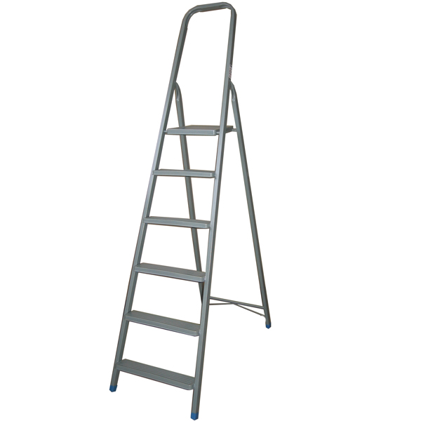 Стальная лестница-стремянка на 6 ступеней — оптимальный вариант для домашних работ. Высота площадки составляет 1,183 м, расстояние между ступенями 0,154 м. Лестница удобна в переноске. Устойчива к коррозии. Лестница выдерживает нагрузку до 150 кг.