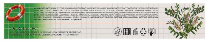 - Дополнительная информация содержит экстракты корня солодки, календулы, чистотела, фиалки трехцветной