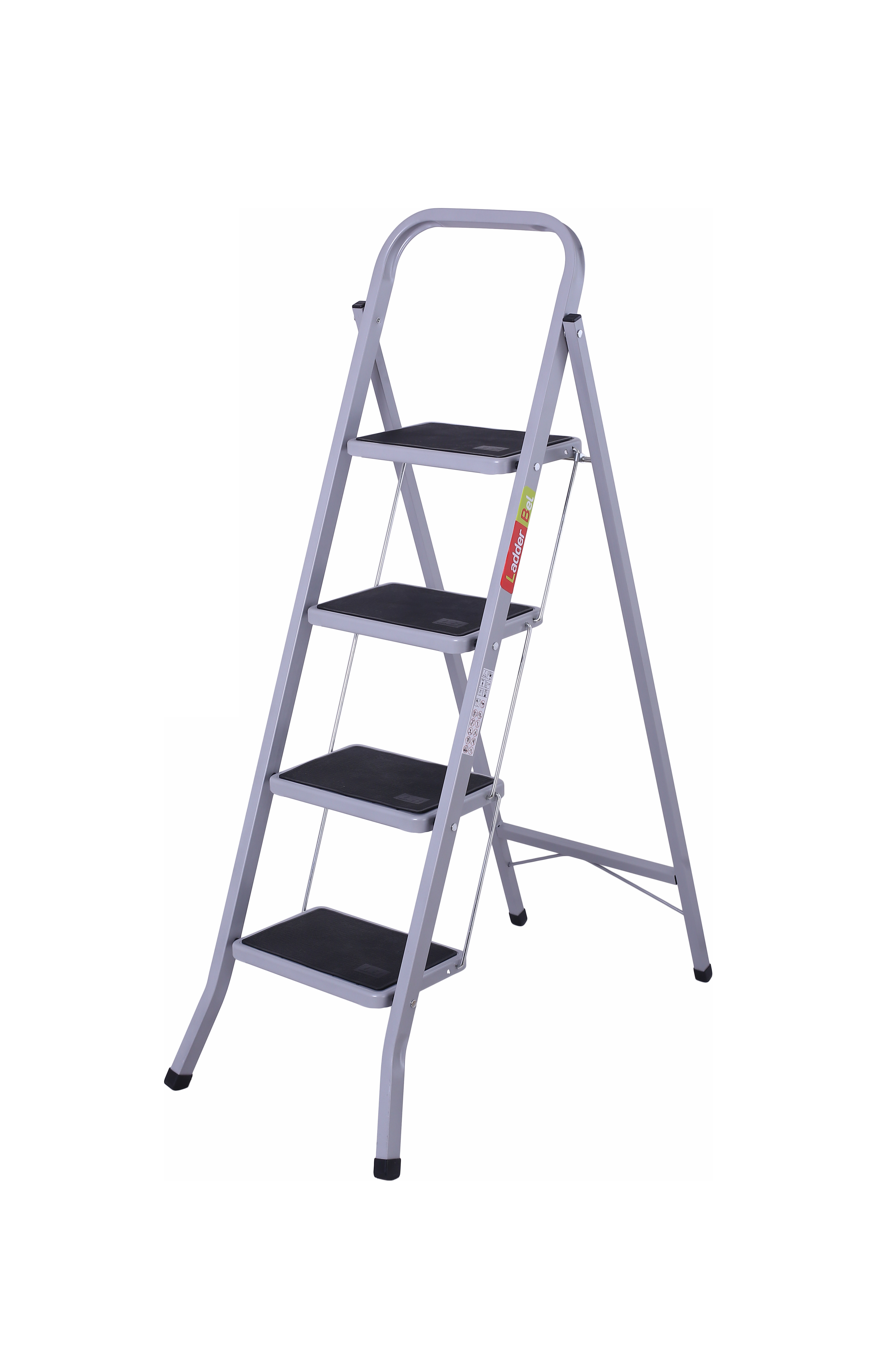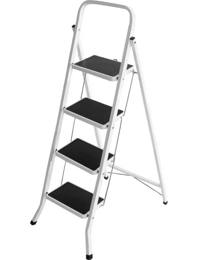 Лестница-стремянка подходит для использования при строительных и монтажных работах. Оборудована 4 широкими ступенями с резиновой поверхностью. Выполнена из высококачественной и прочной стали, которая устойчива к коррозии, ржавчине, окислению, царапинам и механическим повреждениям. Четырехступенчатая конструкция позволяет выполнять различные задачи на высоте до 94 см. Прорезиненные наконечники предотвращают скольжение во время эксплуатации, благодаря чему проведение работ становится максимально комфортным. Допускается нагрузка до 150 килограмм.