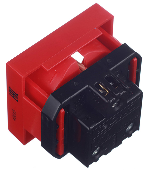 Розетка силовая Viva для кабель-канала ДКС со шторками красная 2 модуля