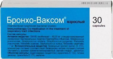 - Дозировка действующего вещества: 1 капсула: стандартизированный лиофилизат бактериальных лизатов: Haemophilus influenzae, Streptococcus pneumoniae, Streptococcus pyogenes, Streptococcus viridans, Klebsiella pneumoniae, Klebsiella ozaenae, Staphylococcus aureus, Moraxella catarrhalis 7 мг