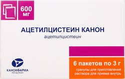 - Дозировка действующего вещества 3 г: ацетилцистеин 600 мг