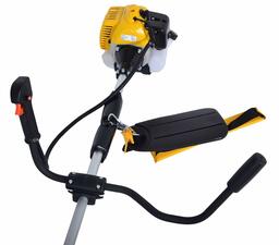 Входящий в комплект наплечный ремень повышает комфорт от использования косы. Благодаря ему вес косы практически не ощутим. Форма рукоятки – велосипедный руль. Он самый удобный для среза растений на большой территории. Полный контроль над процессом роботы возможен благодаря расположению органов управления на рукояти косы. Ручки обрезинены. Не скользят. Все вместе делает эксплуатацию механизма максимально комфортной.
