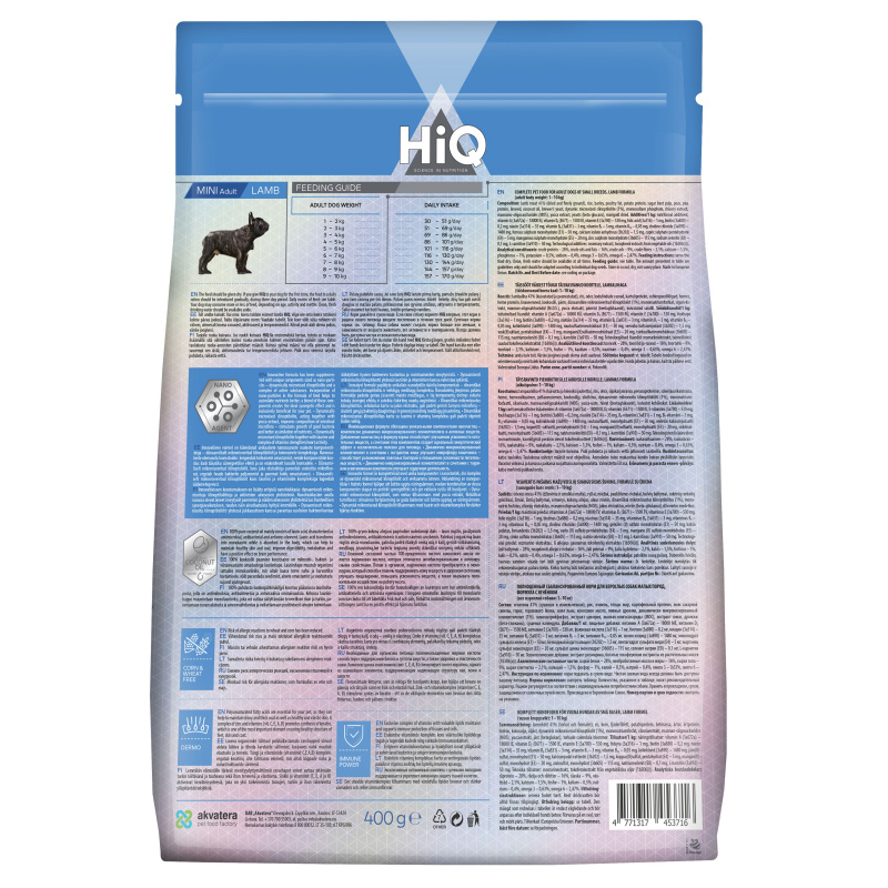 HIQ Сухой корм для взрослых собак мелких пород, с ягненком, 400г 1.8 кг