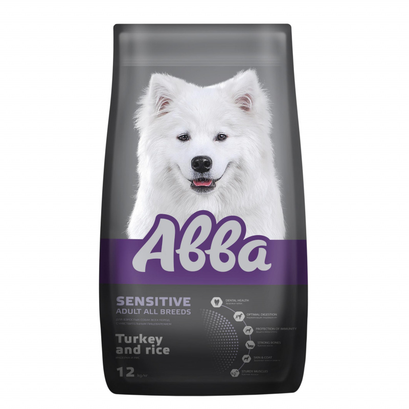 Авва Корм для взрослых собак всех пород с чувствительным пищеварением индейкаи рис, 3кг 3 кг