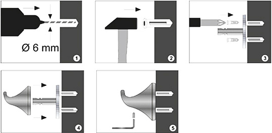 Монтаж Есть два основных вида монтажа аксессуаров – настенный и напольный. Для монтажа первых требуются специальные приспособления и немного времени, для установки аксессуаров другого вида нужно только выбрать место, где будет стоять приобретенное изделие, – на полу или на сантехническом приборе. Настенные аксессуары можно закрепить двумя способами – с помощью дюбелей и присосок. Первый более надежный вариант, но для его установки нередко приходится нарушать целостность кафеля. Если не в Ваших планах идти на такие изменения, то можете выбрать аксессуары на присосках. Чаще всего такие изделия производят из легких материалов, которые даже при падении не бьются. Монтажнастенный (на шурупах)