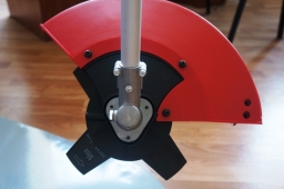 Значительно облегчает эксплуатацию триммера AL-KO BC 1200E использование в блоке скашивания полуавтоматической косильной головки. Ее конструктивная особенность заключается в наличии открытой проушины для беспрепятственной подачи лески. Поэтому при небольшом силовом воздействии оператора на триммерную головку (например, легком постукивании о землю) корд подается автоматически.
