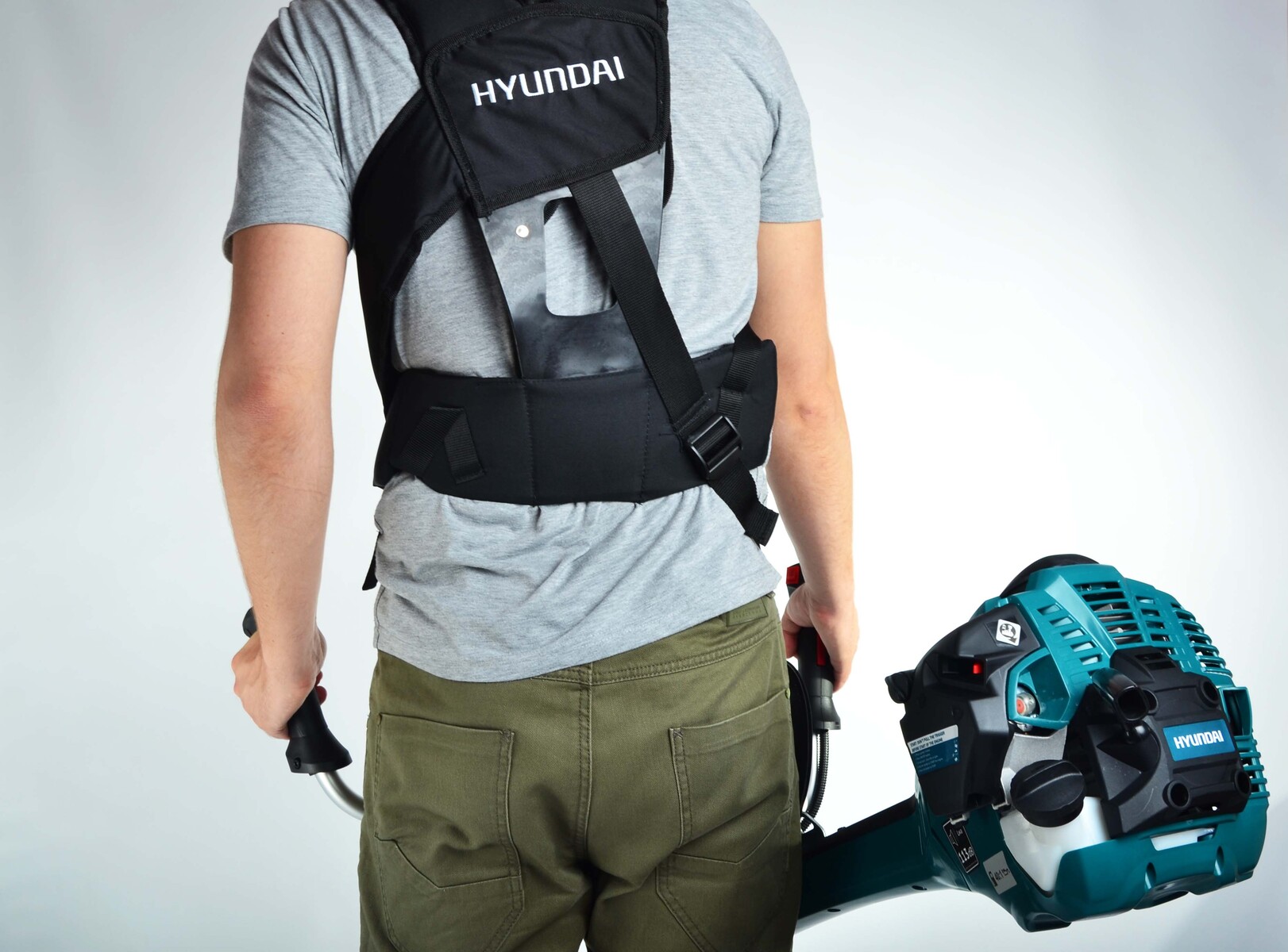 Для длительной работы с инструментом предназначен специальный ранец, с толстыми шлейками из мягкого материала, прошитого прочной ниткой, прилегает к спине, поддерживая мышцы. Пластиковый каркас помогает снять нагрузку с рук и равномерно распределить ее. В результате работа бензокосой HYUNDAI Z525 сопровождается большим комфортом и меньшей усталостью. Металлические карабины помогают прочно закрепить ранец.