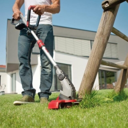 Триммерная катушка с леской оснащена специальным ограничителем в виде защитной скобы, которая не допускает случайного срезания находящихся рядом растений. Это приспособление позволяется аккуратно подстригать траву на клумбах между цветами, в саду возле кустарников без опасности навредить другим культурам. К тому же, благодаря эргономичной рукоятке с регулировкой наклона и особой форме штанги, триммер обладает отличной маневренностью, что также увеличивает точность стрижки.