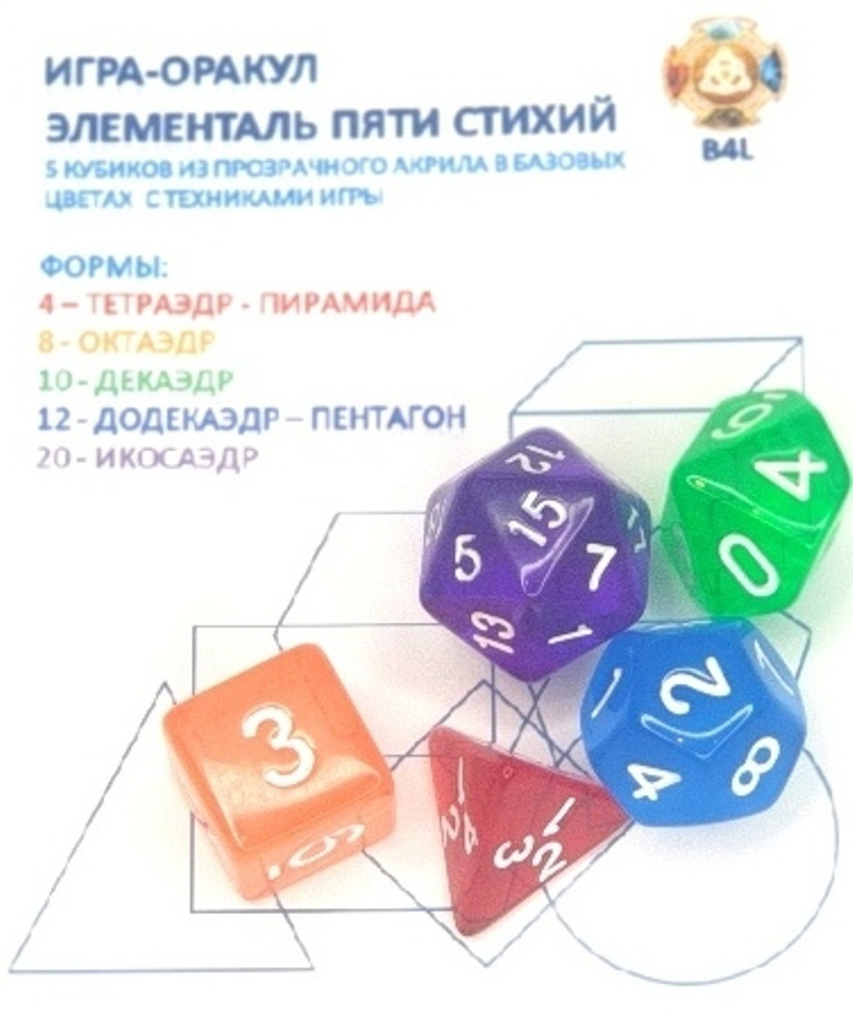 Balance4life Оракул "Элементаль 5" по мотивам т-игры "Элементаль Пяти стихий", кубики-платоновы тела, 5шт