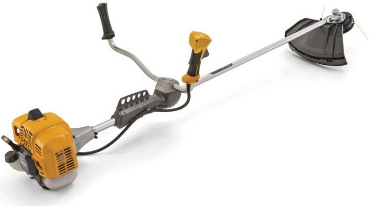 Рукоять в виде буквы U дает возможность комфортно расположить руки для точного и неутомительного покоса. В правую ручку выведены кнопки для регулировки основных параметров. Прорезиненные вставки поглощают вибрационные колебания.