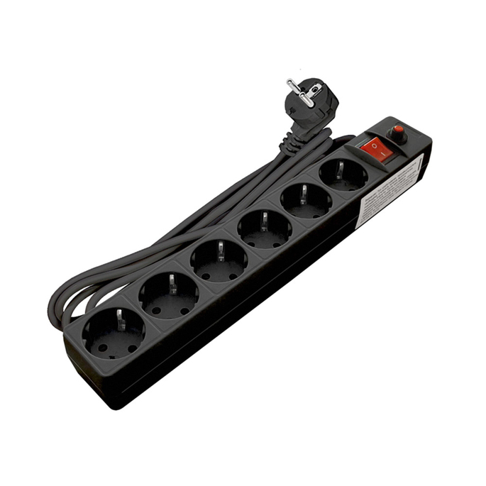 Сетевой фильтр UNIVersal 6 розеток с заземлением со шторками 3 м черный