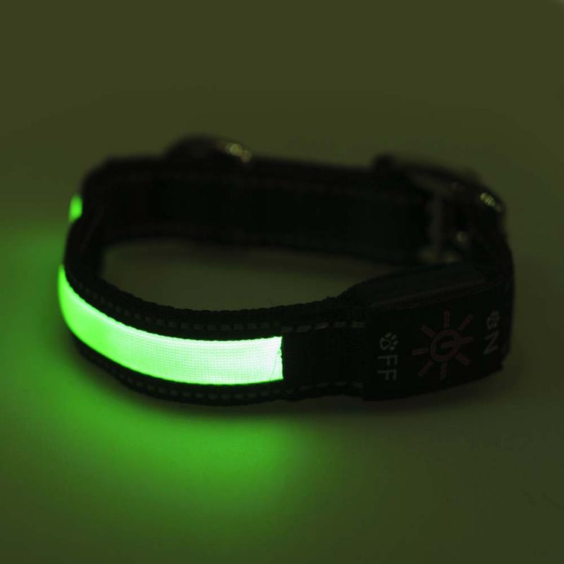 Ошейник светящийся для собак с металлической застежкой размер S 50-60 см зеленый (сменный элемент питания CR032) станет отличным аксессуаром для вашего четвероногого питомца. Оригинальный ошейник будет плотно сидеть на шее, не сковывая движения собаки. Он имеет надежное крепление и изготовлен из высококачественного материала. С таким аксессуаром ваш питомец не потеряется во время прогулки в темное время суток, что особенно актуально в осенне-зимний период. На самом ошейнике имеется кнопка для включения и выключения режима свечения, что экономит заряд и позволяет включать его по мере необходимости. Прочная металлическая застежка выдерживает большие нагрузки и при этом абсолютно не раздражает кожу питомца. Добавьте яркости в образ вашего четвероногого друга при помощи светящегося аксессуара, который будет одновременно красивым и практичным.