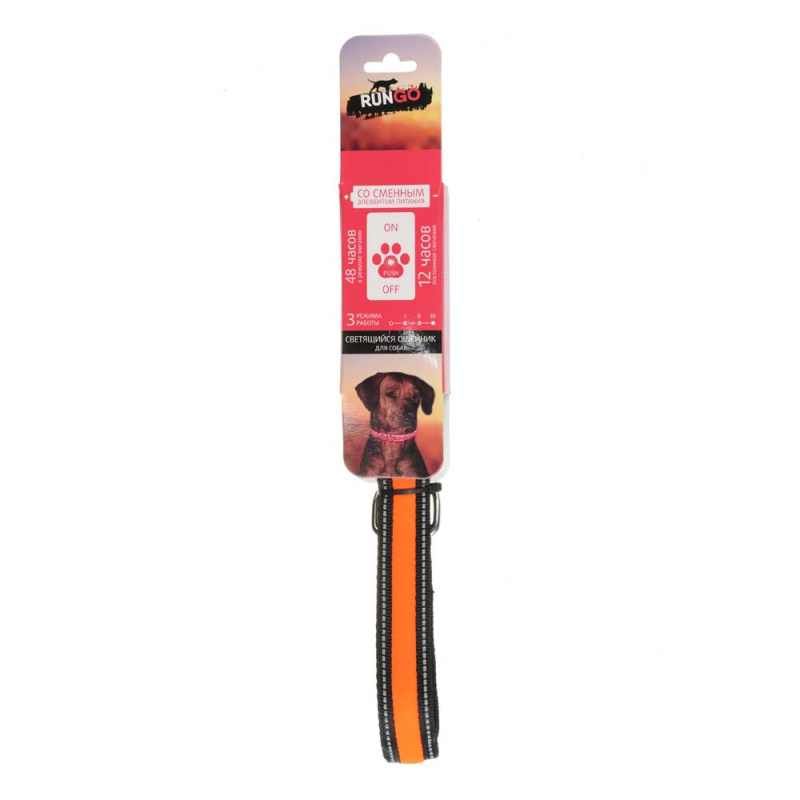 Rungo Ошейник светящийся, металлическая застежка 50-60см оранжевый 108 г
