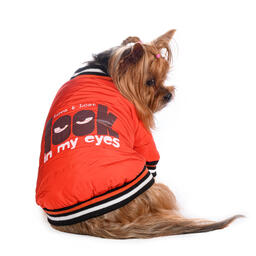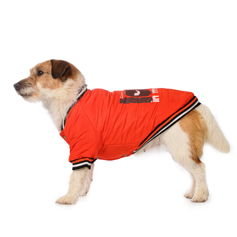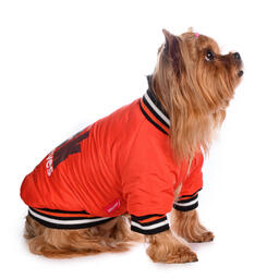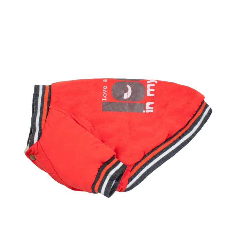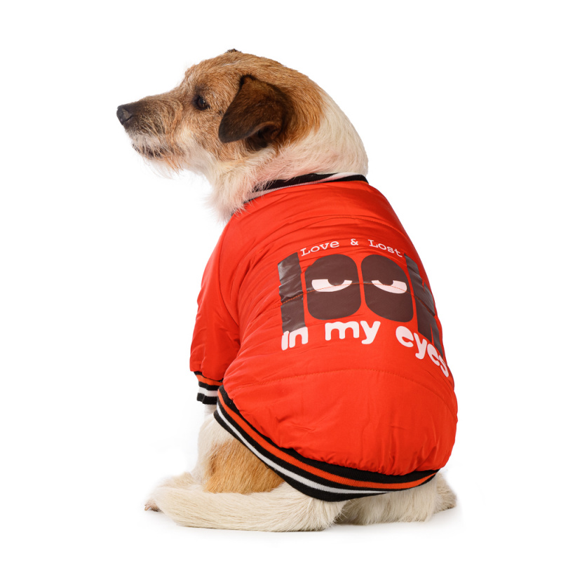 Красивый, современный дизайн с яркой надписью на спине, рукавами для передних лап и воротом на шее.