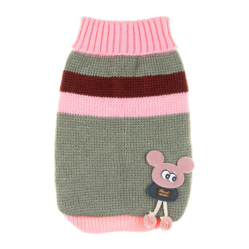 Petmax Свитер в полоску розовый с аппликацией 20см M