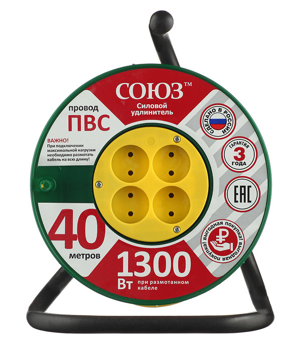 Удлинитель силовой Союз на катушке 4 розетки 1300 Вт 40 м