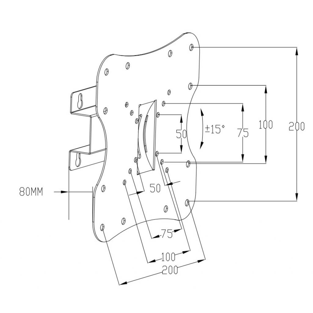 • VESA 50 x 50, 75 x 75, 100 х 75, 100 x 100, 150 x 100, 200 x 100, 200 x 200