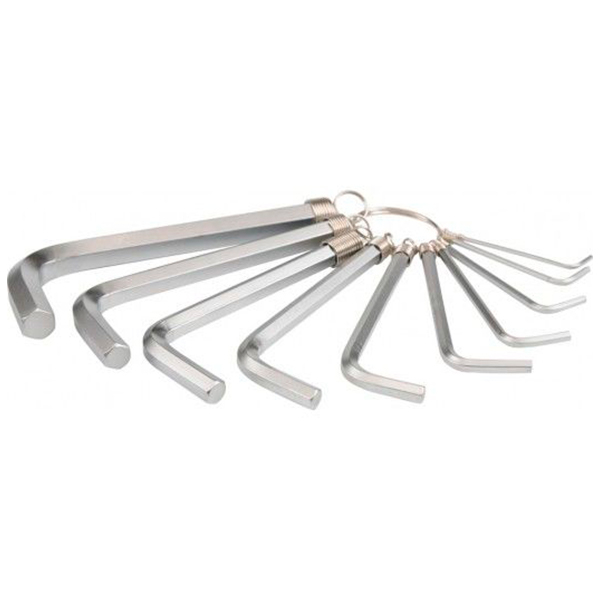 В наборе Yato YT-0504, состоящем из 10 шестигранных ключей, ключи с размерами 1.5; 2; 2.5; 3; 4; 5; 6; 7; 8; 10 мм.