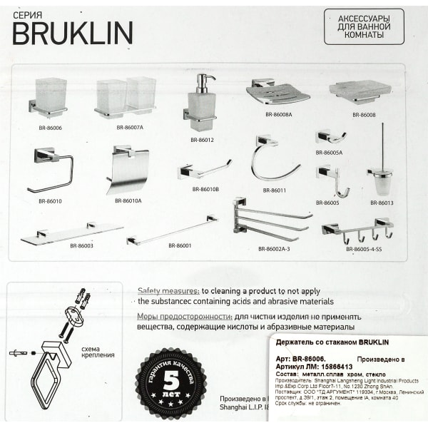 Стакан подвесной для зубных щёток «Bruklin», стекло