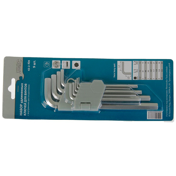 Комплектация набора имбусовых ключей Hardax 43-2-100: 9 ключей с размерами 1.5, 2, 2.5, 3, 4, 5, 6, 8, 10.