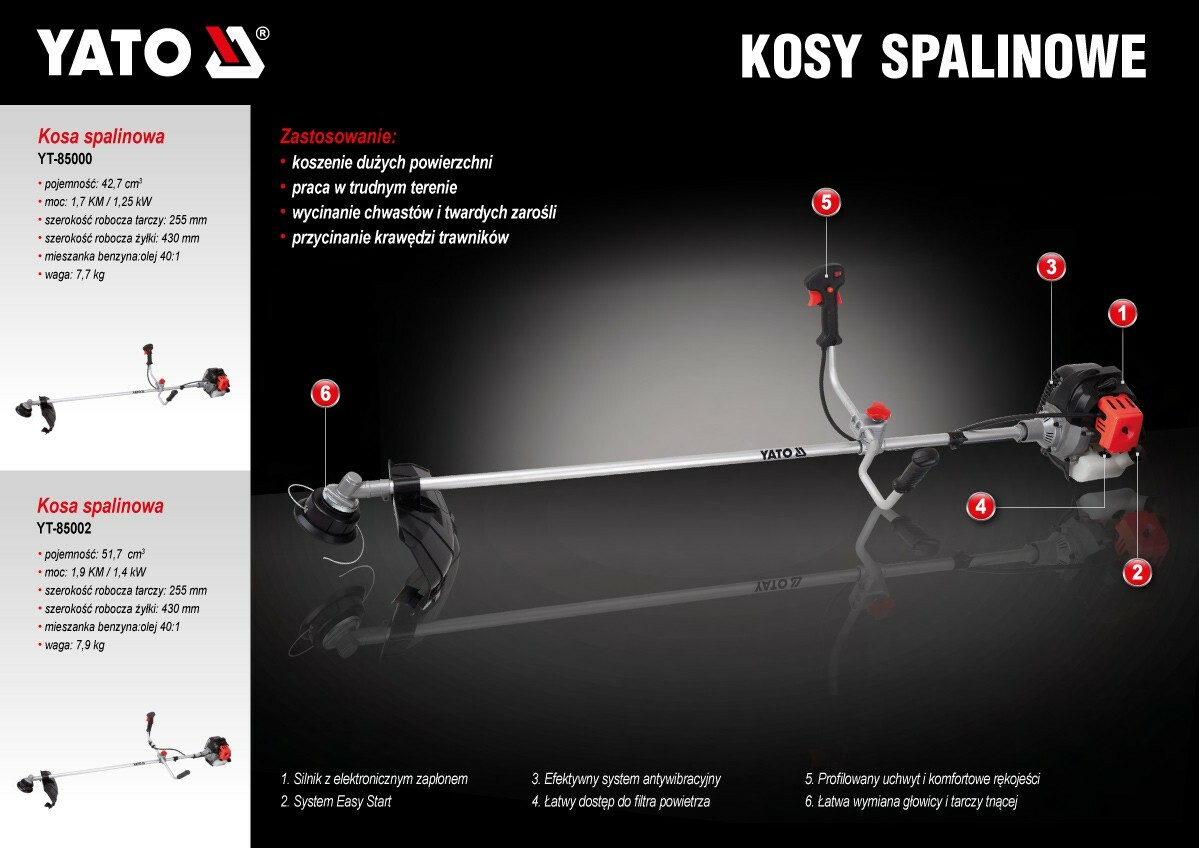 Мотокоса польской торговой марки Yato разработана лучшими инженерами корпорации для обслуживания больших участков с густой растительностью.