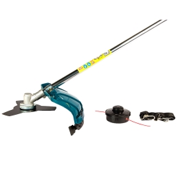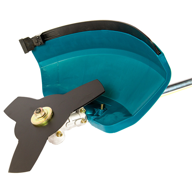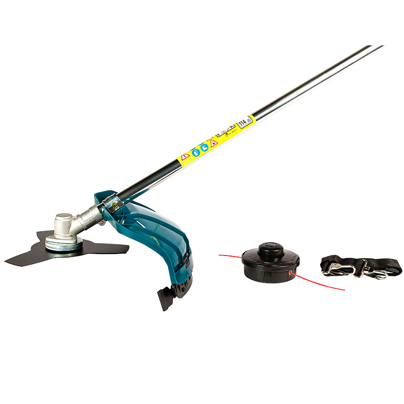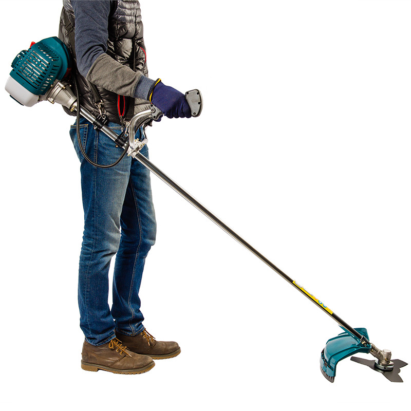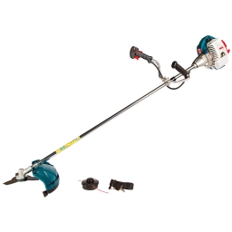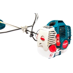 • Комплектация - Бензиновый триммер;- редуктор штанги;- штанга;- правая часть рукоятки управления;- левая часть рукоятки управления;- крепление рукоятки управления;- катушка с режущей леской;- 3-х лопастный нож;- основной защитный кожух;- крепление защитного кожуха;- наплечный ремень;- набор инструмента;- емкость для топливной смеси;- инструкция по эксплуатации;- гарантийный талон