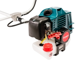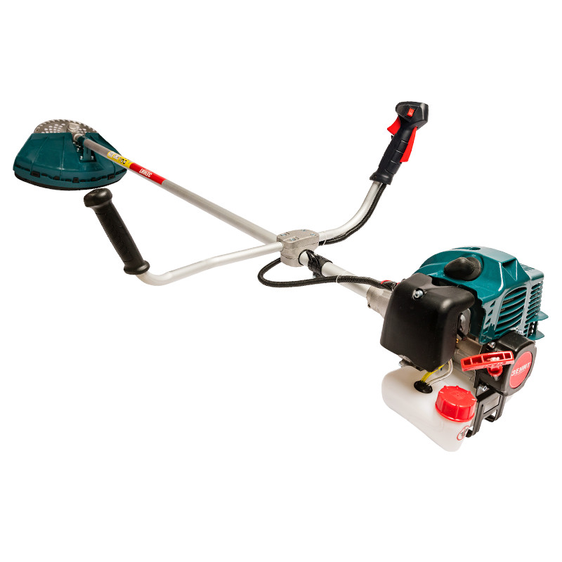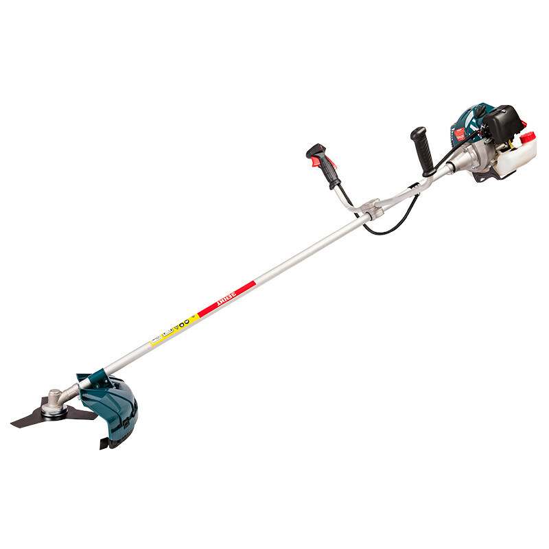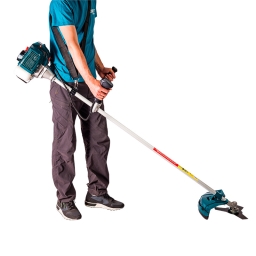 Применяется для скашивания растительности на участке возле дома, легко косит даже в труднодоступных местах. Оснащен надежным мотором (объем – 52 куб. см.), трехлопастным ножом. Имеет удобные ручки с улучшенным креплением, а также плечевой ремень.