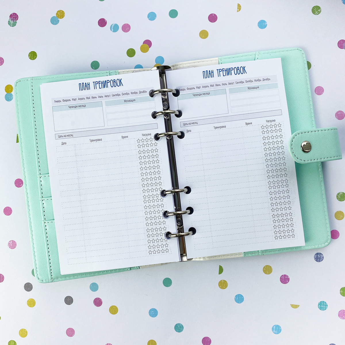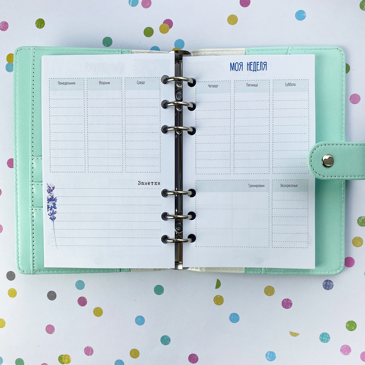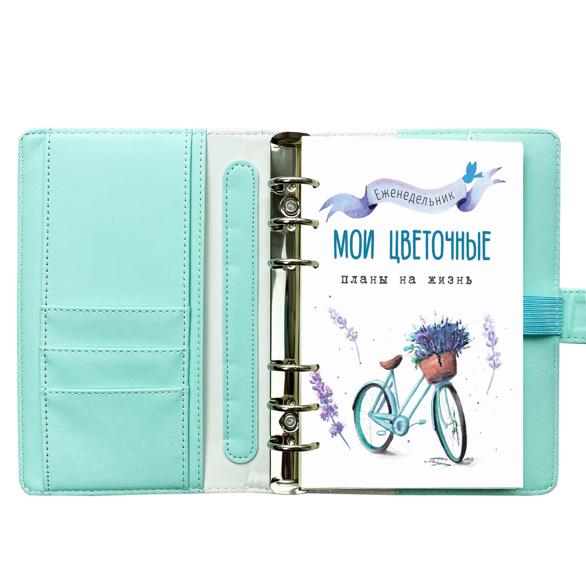 Ежедневник "Мои цветочные планы" А6 на 6 кольцах (голубой, с кнопкой). Fancy Planner