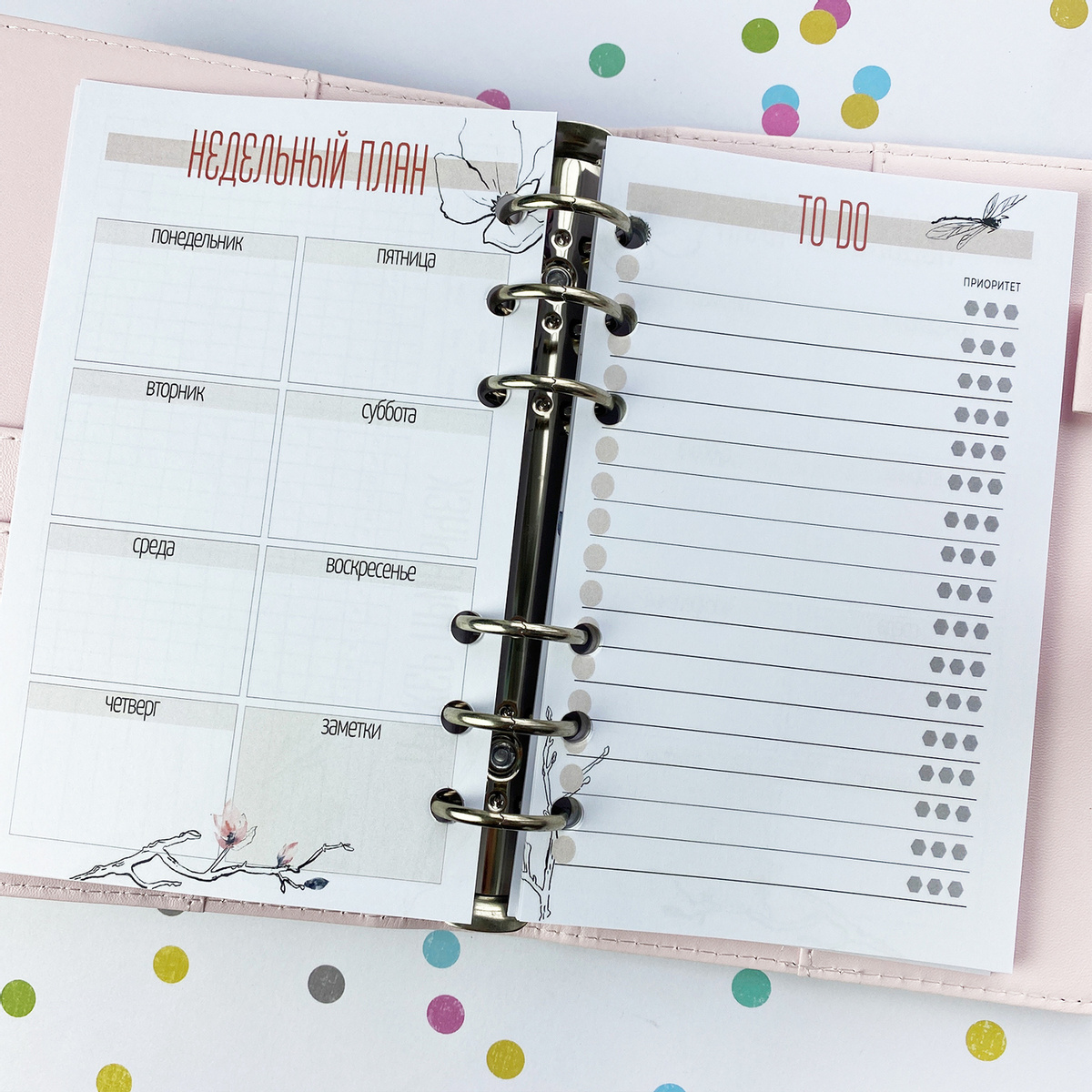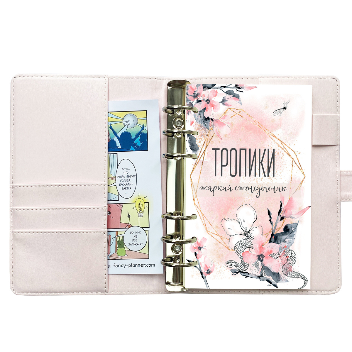 Ежедневник "Тропики" А6 на 6 кольцах (мятно-розовый с фламинго). Fancy Planner