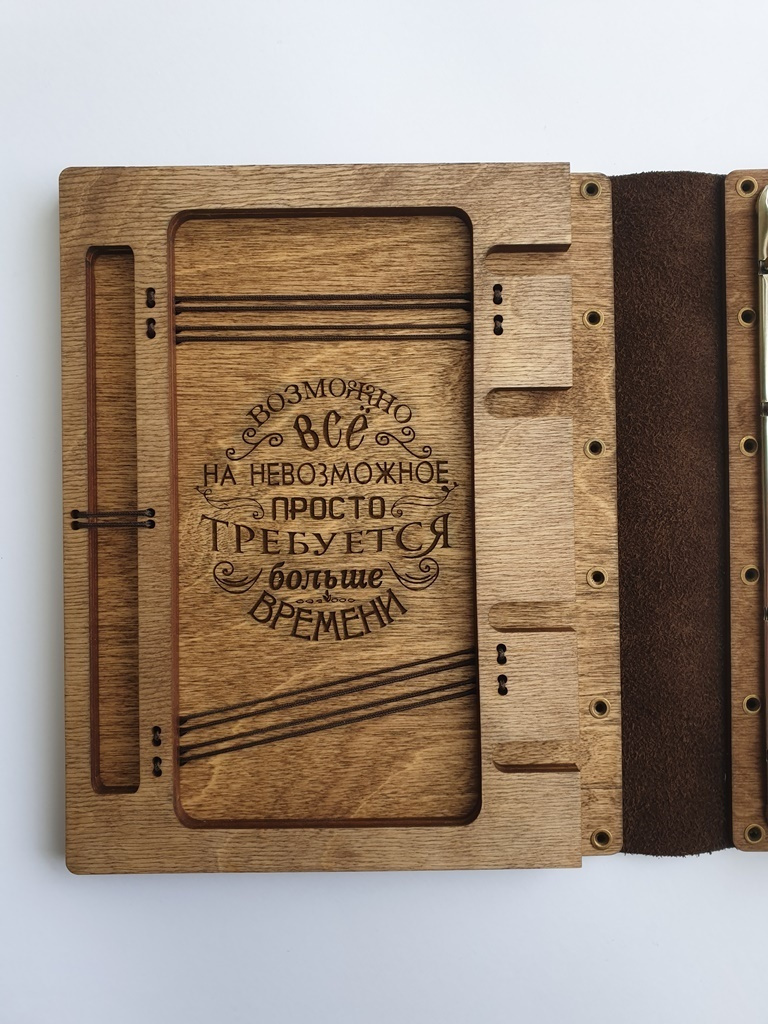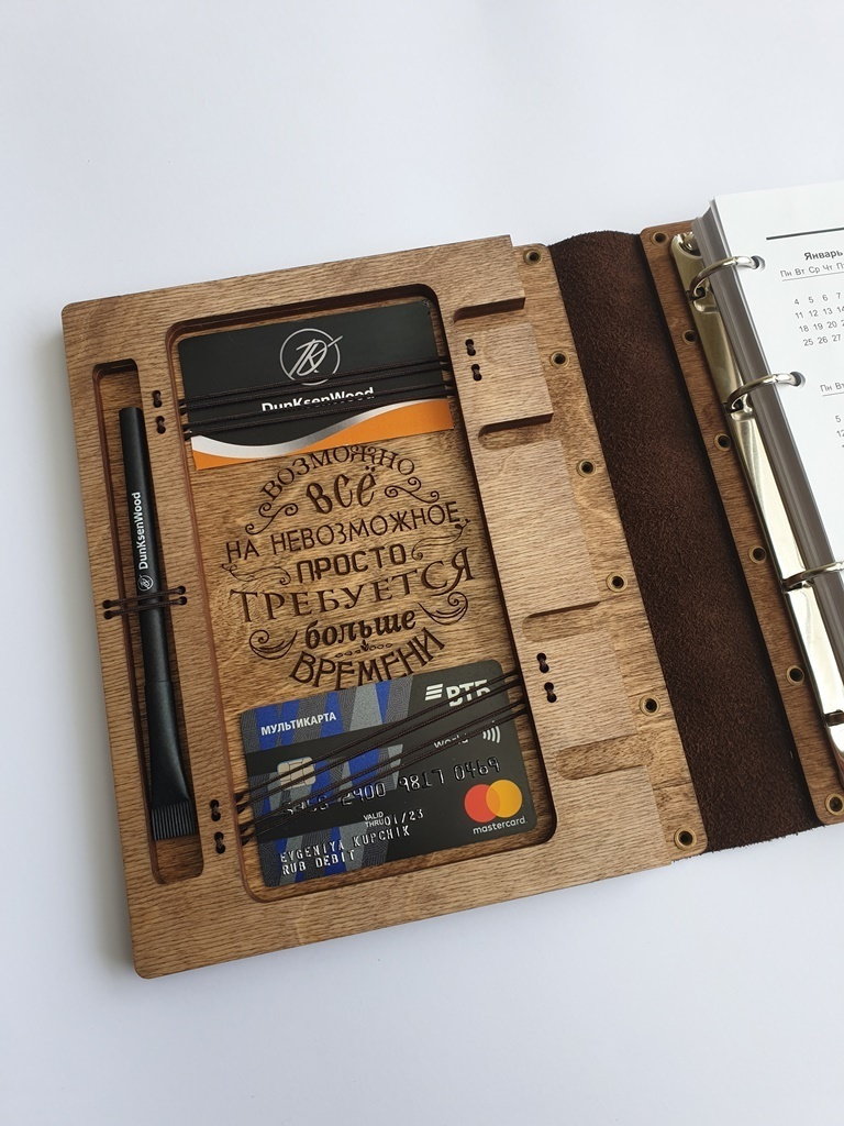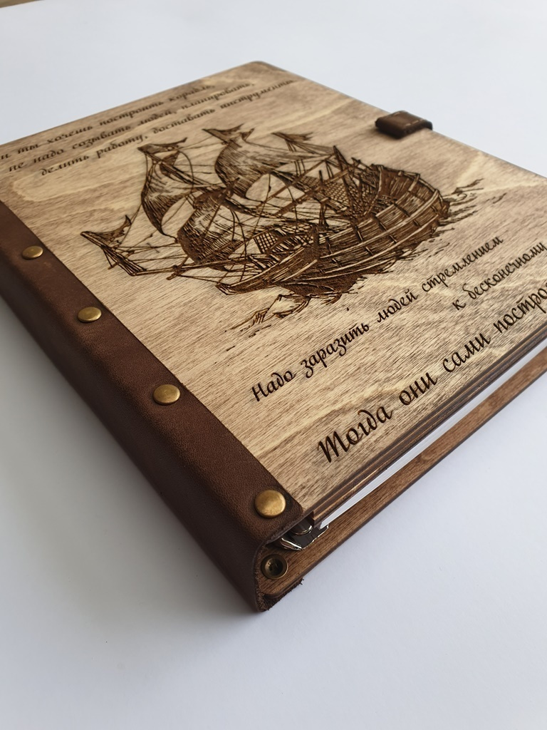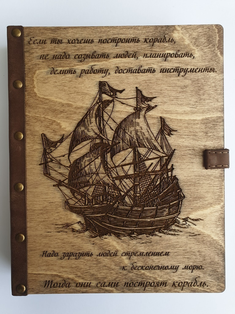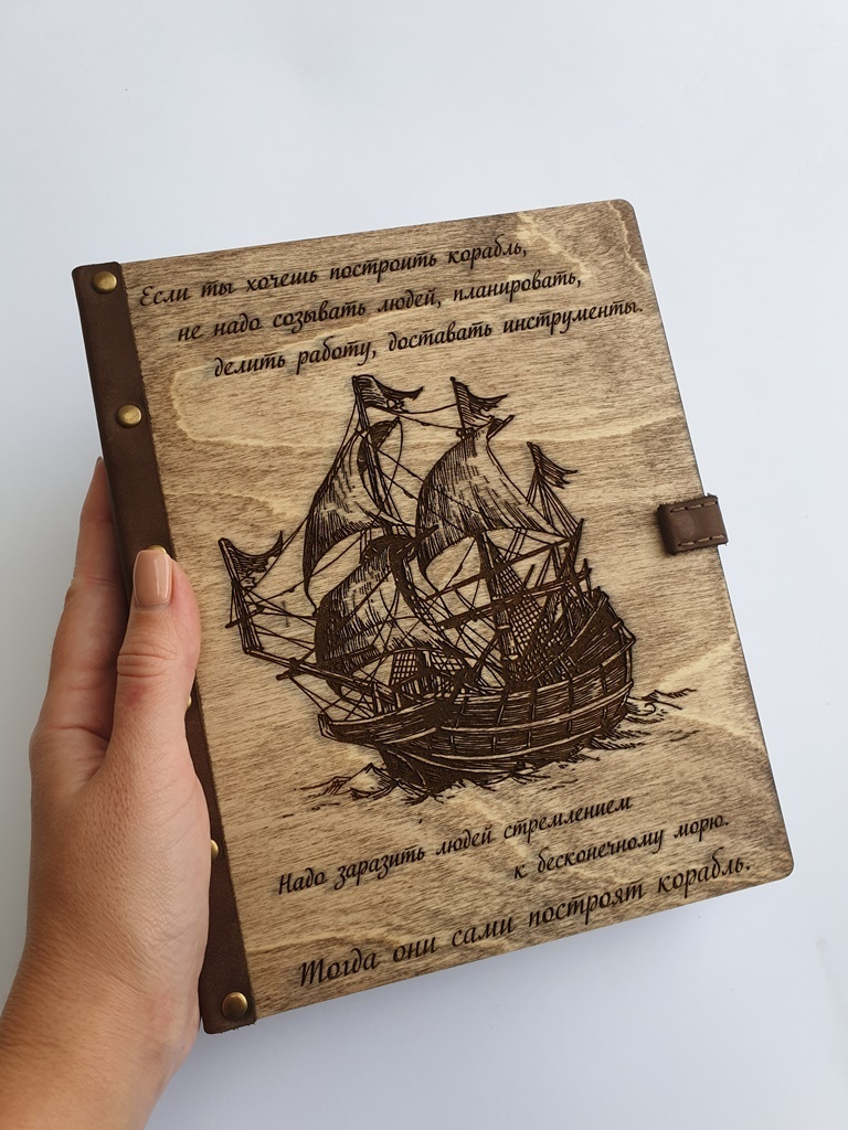 Ежедневник DKWood Корабль. Ручная работа. А5, недат, 100 листов + органайзер, амарант