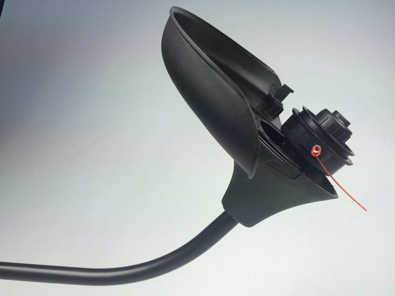 Важным элементом конструкции представленной электрокосы является специальный кожух в модуле скашивания. Он изготовлен из прочного, но легкого пластика, поэтому не утяжеляет конструкцию. Однако именно благодаря этому приспособлению обеспечивается гарантированная защита оператора от случайных повреждений режущим органом.