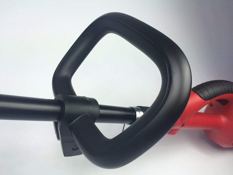 Представленный садовый триммер IKRA MOGATEС оснащен замкнутой D-образной рукояткой, которая легко перемещается вдоль штанги и меняет угол наклона. Это очень удобно при частой смене угла скашивания. Эргономичный плечевой ремень - для оптимального распределения нагрузки. Неоспоримым достоинством модели IKRA MOGATEС ES 1000 E является эргономичный плечевой ремень. С его помощью существенно уменьшается нагрузка на мышцы при длительных работах. В случае же попадания под леску жесткой растительности или веток кустарника и, как результат, «вырывания» триммера из рук, данная ременная оснастка обеспечивает безопасность оператора.