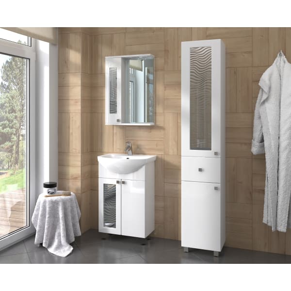 • Материал / отделка фасадов дверей / ящиков Древесноволокнистая плита средней плотности (МДФ), покрытая блестящим меламином