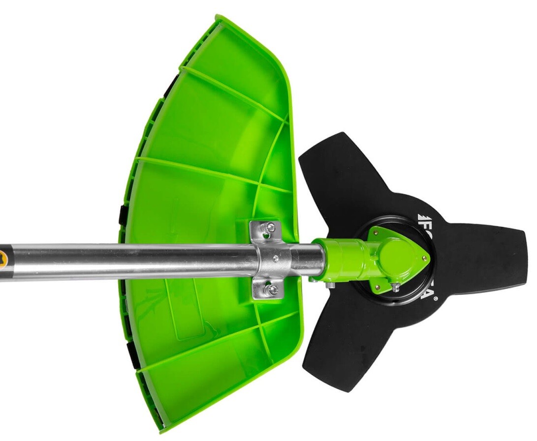 продуктивный срез мягкой либо жесткой растительности реализован двумя косильными принадлежностями – шпулей с леской и ножом;