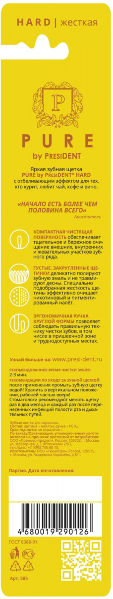 Зубная щетка Pure by PresiDENT, жесткая, синий