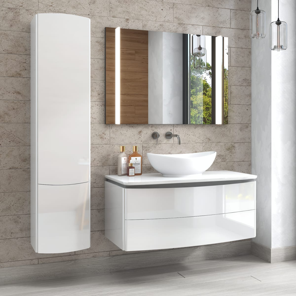 • Материал / отделка фасадов дверей / ящиков Древесноволокнистая плита средней плотности (МДФ), покрытая блестящим меламином