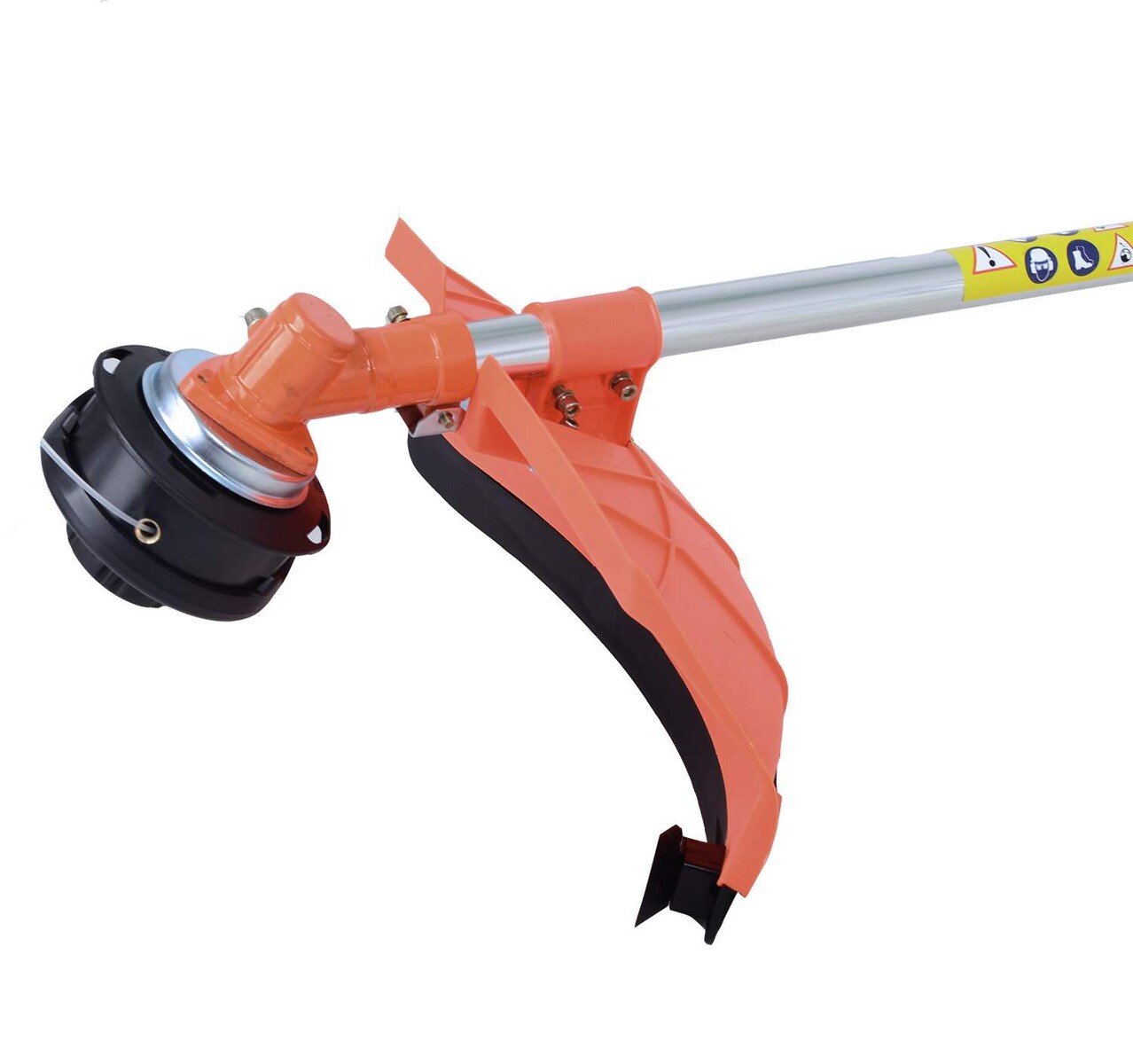 Шпуля с леской предназначена для борьбы с молодой растительностью на широких лужайках. Оператор может за небольшой промежуток времени убрать траву с большого газона. Система упрощенного выпуска лески позволяет быстро удлинить леску, не открывая шпулю. С помощью лески подстригается трава вдоль дороги и тропинок, убирается растительность вокруг деревьев и кустов. Стальной нож необходим для среза более плотных растений, в виде толстых сорняков или небольших кустиков. Заводская заточка ножа позволяет делать ровные срезы не повреждая стебли.