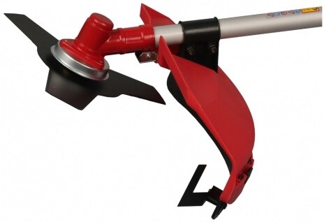 Электрокоса имеет два режима работы: с леской и с ножом. Ширина кошения леской 42 см. Леска подается автоматически, не нужно останавливаться во время работы, что экономит время и силы. Нож острый, трехлопастный. Косит в ширину на четверть метра, срезая даже молодые побеги кустов и деревьев.