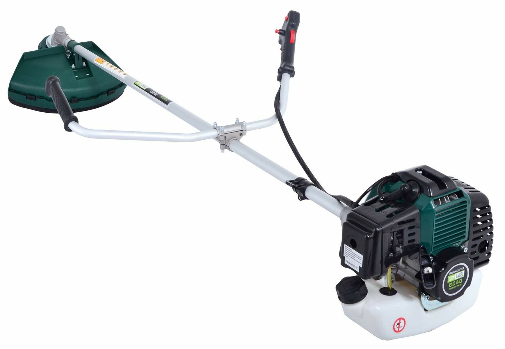 Надежный двухтактный двигатель с мощностью 3,6 л.с. и объемом 51,6 м3 разработан производителем Iron Angel. Он легко справляется с покосом как сухой, так и свежей травы. Запас мощности и автономность дает возможность работы на больших участках. Кроме того, его можно применять для очистки участка от проросших кустарников и деревьев с небольшим диаметром.