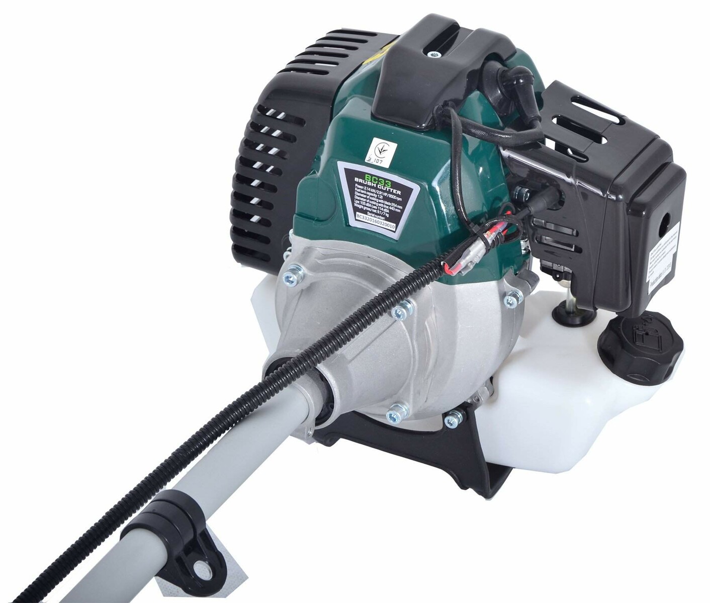 Двухтактный двигатель ( мощность 2,9 л.с.) приспособлен выполнить любые задачи по кошению травы. Двигатель неприхотлив, легко заводится и потребляет немного топлива. Очень экономный. Устройство подходит для покоса травы, засохшей травы, небольших сорняков и кустарников, проросших деревьев с маленьким диаметром. Работает на смеси масла и основе бензина.