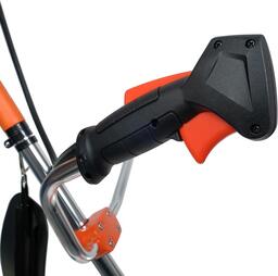 Ручки агрегата велосипедного типа удобны для управления скашиванием и регулируются по высоте;