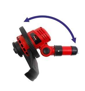 Режущая головка может поворачиваться по вертикали, в зависимости от поставленных задач. Поворот головки по горизонтали на 180 градусов необходим, если требуется подстричь траву вдоль кромки газонов или бордюров.